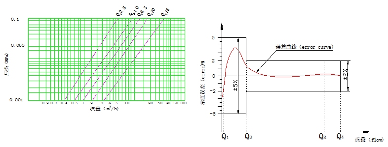 從最小流量到分界流量(不包括分界流量)為±5%.
