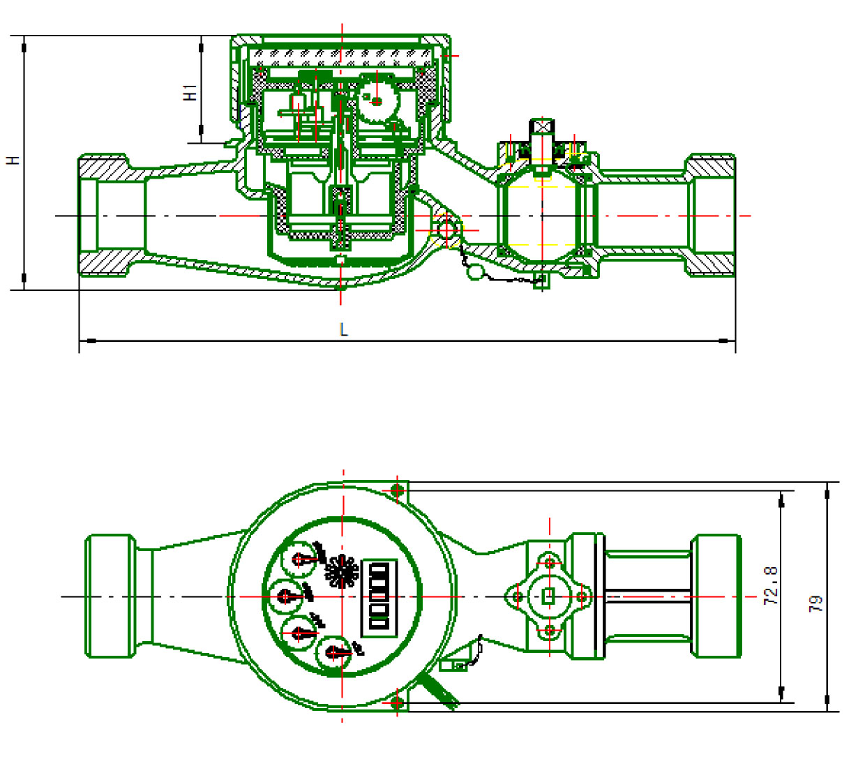 濕式無遮擋表閥一體水表